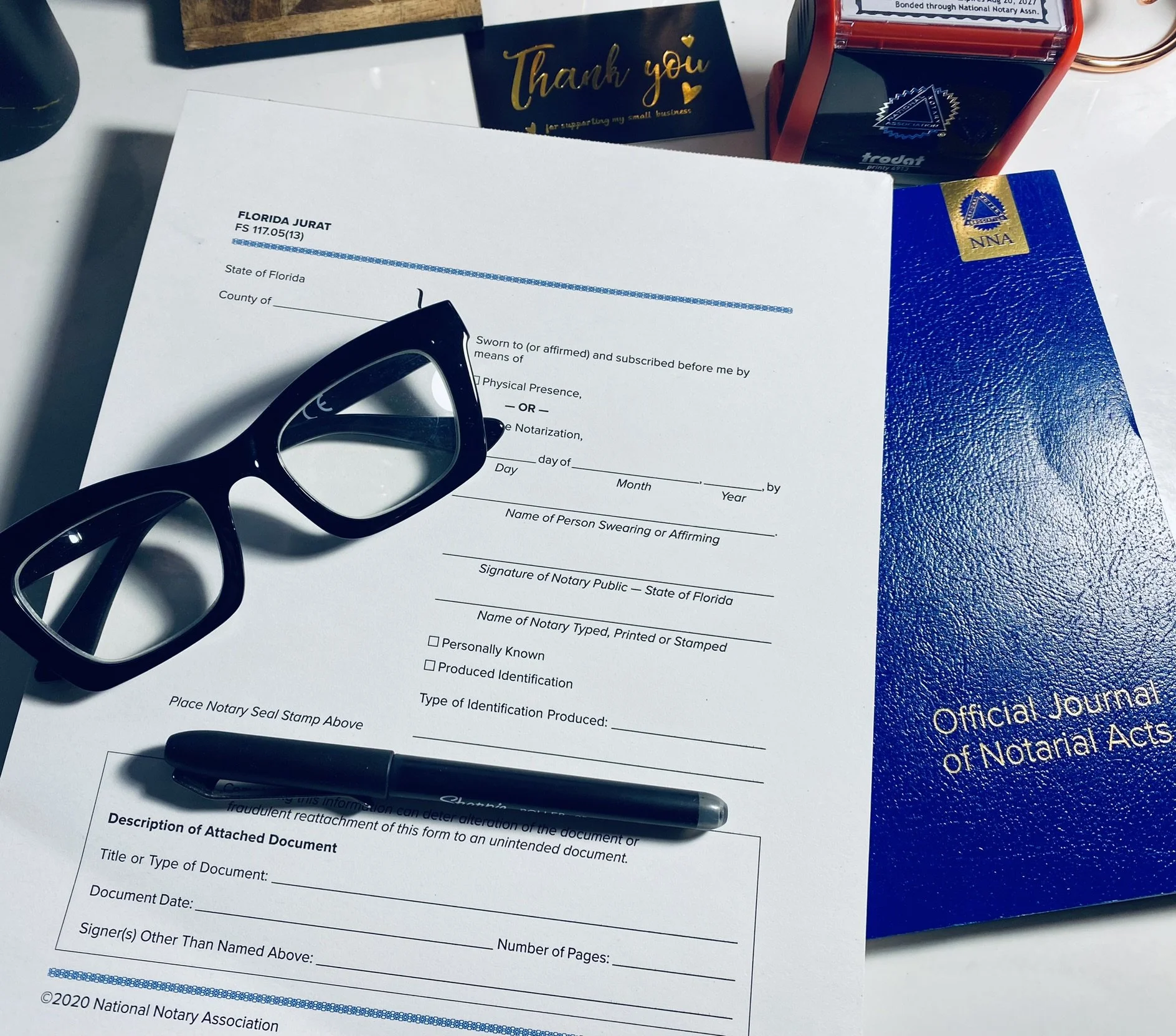 General Notarizations ( e.g. Florida Jurat, Individual Acknowledgment, Copy certification and more)Tax Preparation & Bookkeeping